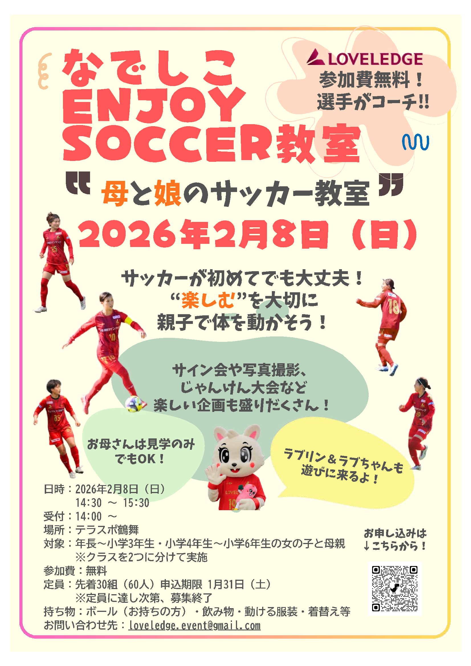 対 象:年長~小学3年生、小学4年生~小学6年生の女の子とお母さん